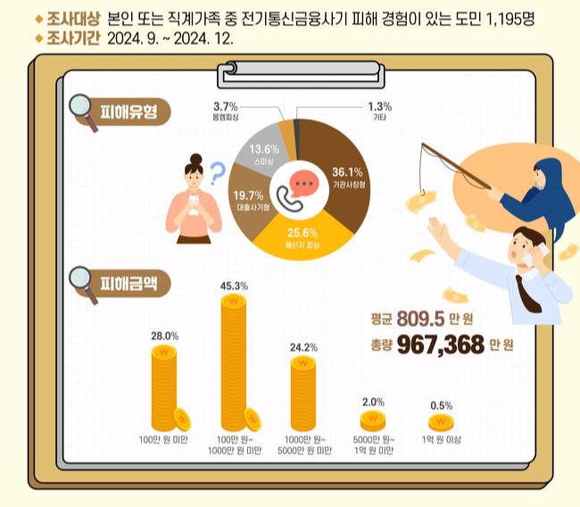 경기도는 본인 또는 직계가족 중 전기통신금융사기 피해경험이 있는 도민 1,195명을 모집해 피해현황 실태조사를 실시했다고 27일 밝혔다.