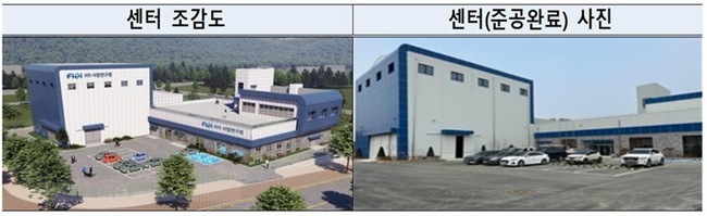 ▲ `순환경제 혁신지원센터` 조감도 및 사진(이미지=산업부 제공)혁신지원센터는 국비 99억 원, 지방비 100억 원, 민간투자 45억 원 등 총사업비 244억 원이 투입돼 연면적 2231.7㎡, 지상 2층 규모로 건립됐으며 모두 14종의 장비를 도입해 운용할 계획이다.