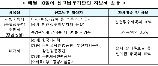 아울러 이달 마지막 날이 납부기한인 재산세(주택분·토지분), 담배소비세는 토요일(9월 30일)과 임시공휴일 지정(10월 2일)에 따라 10월 10일이 납부기한이 된다.