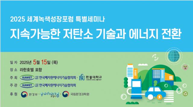[일간환경연합 김경훈 기자] 한국폐자원에너지기술협의회는 오는 15일 포항 라한호텔 4층 세미나실에서 한동대학교와 공동으로 ‘지속가능한 저탄소 기술과 에너지 전환’을 주제로 세미나를 개최한다고 12일 밝혔다.