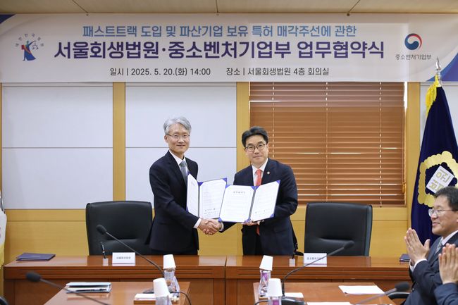 [일간환경연합 신상미 기자] 중소벤처기업부(장관 오영주)가 서울회생법원과 파산기업 기술거래 정례화 및 소상공인 파산·회생 패스트트랙 신설을 위한 업무협약(MOU)을 5월 20일 체결했다고 발표했다.