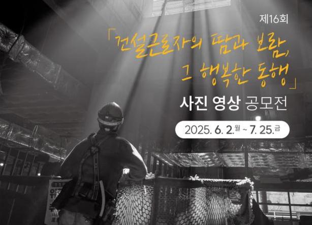 [일간환경연합 김경훈 기자] 건설근로자공제회는 건설근로자의 노고와 보람을 조명하기 위해 ‘제16회 건설근로자 사진·영상 공모전’을 개최하고, 오는 7월 25일까지 온라인으로 참가 접수를 받는다고 밝혔다.