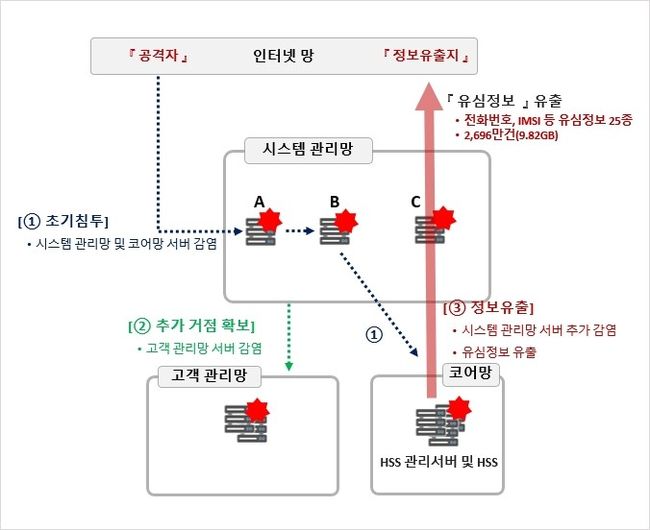 특히 공격자는 2021년 12월 음성통화인증(HSS) 관리서버에 접속해 BPFDoor 악성코드를 설치했으며, 2025년 4월 18일 음성통화인증 3개 서버에 저장된 유심정보를 외부로 유출했다. SK텔레콤은 평소 대비 대용량 데이터가 외부로 전송된 정황을 4월 18일 23시 20분 인지하고, 4월 20일 16시 46분 한국인터넷진흥원에 침해사고를 신고했다.