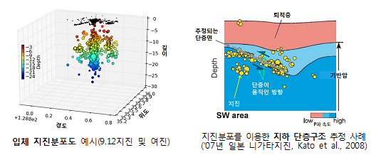 실제로 지난 2007년에 발생한 일본 니가타 지진 당시에도 지진 분포를 이용해 지하 단층구조를 추정한 바 있다.