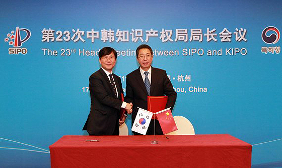 [일간환경연합 장민주기자]성윤모 특허청장은 중국의 션창위 국가지식산권국장과 지난 17일 중국 항저우에서 청장회담을 갖고 특허·디자인 분야에서 양국의 협력성과가 국제적인 성공 사례로 이어질 수 있도록 그 협력 수준을 높여 나가기로 했다고 특허청이 19일 밝혔다.
