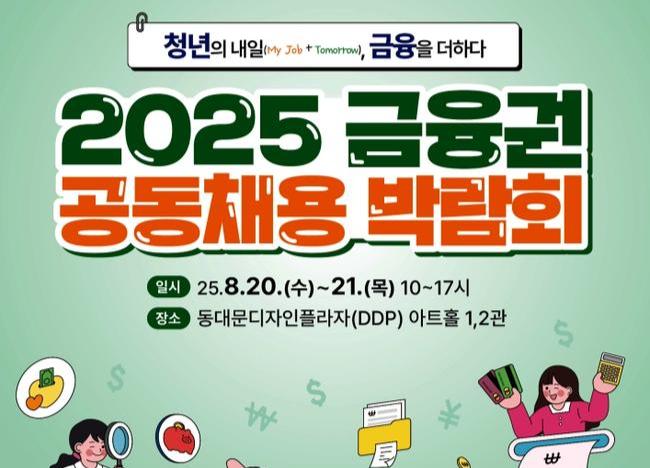 [일간환경연합 장민주 기자] 청년 구직자와 금융기관을 연결하는 국내 최대 금융 취업 행사 ‘2025 금융권 공동채용 박람회’가 8월 20일부터 서울 동대문디자인플라자에서 열린다.