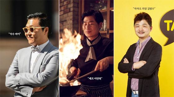 왼쪽부터 가수 싸이, 이연복 셰프, 김범수 카카오 의장. (사진 = 교육부)김 총리는 유튜브 30억뷰를 달성한 가수 싸이, 요리사 직종 위상을 높인 이연복 셰프, 카카오톡을 만든 김범수 카카오 의장을 창의적 아이디어와 도전정신의 대표 사례로 소개했다.