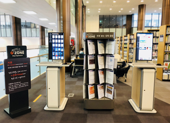 국립세종도서관 정책자료실 지존(G-Zone) 코너.11일 국립세종도서관에 따르면 지존(G-Zone)은 Government Zone의 약자로 정부 및 지방자치단체, 공공기관에서 발행한 정책 관련 자료를 모두 모아 원문으로 제공하기 위한 정책정보포털 POINT(http://policy.nl.go.kr)의 마이크로사이트이다.
