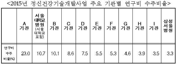 아울러 “정신건강기술개발 사업의 연구비가 2015년, 특정기관에 집중됐다는 것은 사실과 다르다”고 강조했다.
