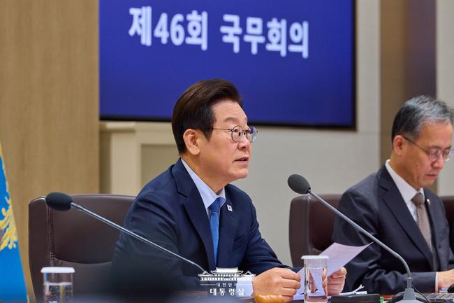 이재명 대통령이 14일 서울 용산 대통령실 청사에서 열린 국무회의에서 발언하고 있다.