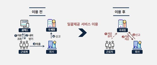 [일간환경연합 신상미 기자] 국세청이 21일 연말정산 간소화자료를 회사가 직접 받아 처리하는 ‘간소화자료 일괄제공 서비스’ 신청을 오는 30일까지 접수한다고 밝히며, 근로자와 기업 모두의 연말정산 부담을 크게 줄일 수 있다고 안내했다.