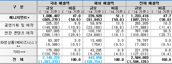 ※ 대중문화예술산업 기획업 매출 규모(분야별)