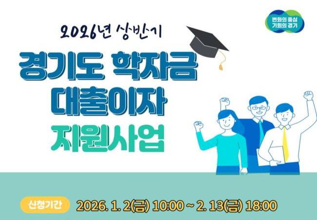 경기도는 `2026년 상반기 대학생 학자금 대출 이자 지원사업` 신청을 2월 13일까지 접수한다.