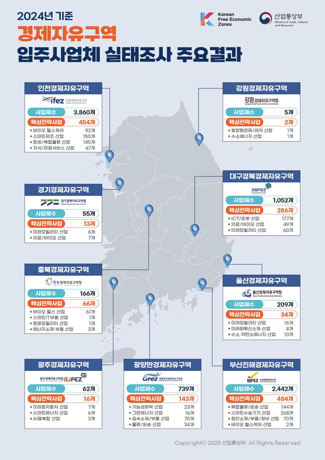 [일간환경연합 한선미 기자] 산업통상자원부와 9개 경제자유구역청이 실시한 ‘2024년 기준 경제자유구역 입주사업체 실태조사’ 결과, 외국인투자기업 수와 고용·투자가 큰 폭으로 늘며 경제자유구역이 지역경제의 핵심 성장거점으로 자리매김한 것으로 나타났다.