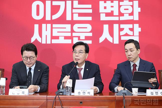 [일간환경연합 신상미 기자] 국민의힘은 26일 국회에서 열린 최고위원회의에서 송언석 원내대표 발언을 통해 더불어민주당 공천뇌물 의혹과 이재명 정권의 언론·사법 탄압을 문제 삼으며 공천뇌물 특검 수용과 언론 입틀막법 철회를 강력히 촉구했다.