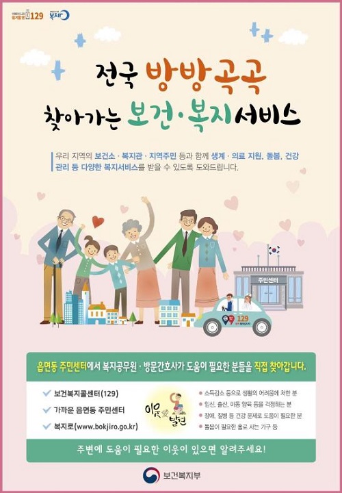 [일간환경연합 장민주 기자]보건복지부는 마을 사정에 밝은 지역 자원봉사자와 복지공무원이 2인 1조를 이뤄 도움이 필요한 주민을 직접 찾아가는 서비스를 시작한다고 22일 밝혔다.