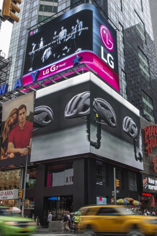 하루 유동인구가 150만명에 달하는 뉴욕 타임스스퀘어에서 관광객들을 통해 방탄소년단과 LG G7 ThinQ가 다시 한번 화제가 될 전망이다. 방탄소년단은 4월부터 LG G7 ThinQ 광고 모델로 활동하는 가운데 최근 빌보드 200 차트 1위에 오르면서 국내를 비롯한 전 세계에서 인기를 모으고 있다.