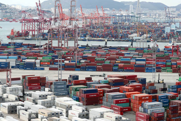 부산항 감만부두와 신선대부두에 수출입 화물이 쌓여 있다. (사진=(c) 연합뉴스)