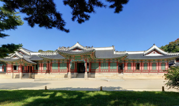 창덕궁 희정당 외부 전경.보물 제815호인 희정당은 대조전과 더불어 조선 시대 왕과 왕비가 생활하던 창덕궁의 내전 영역에 속하며, ‘밝은 정사를 펼치다’라는 의미를 담고 있는 전각이다.