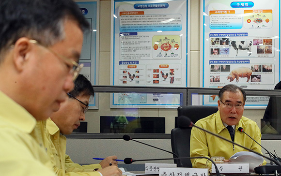 이개호 농림축산식품부 장관이 30일 세종시 정부세종청사 농림축산식품부 상황실에서 열린 ‘구제역 상황점검 및 대책회의’에서 모두발언하고 있다. (사진=(c) 연합뉴스)