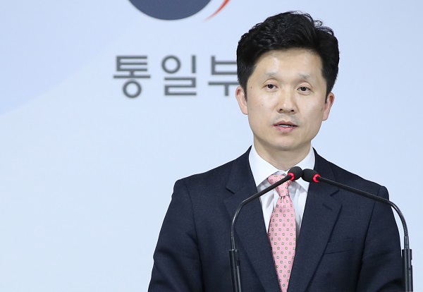 이상민 통일부 대변인이 8일 오전 서울 세종로 정부서울청사에서 열린 정례 브리핑에서 대북 식량 지원 여부 등에 대한 질문에 답하고 있다.(사진=(c) 연합뉴스)