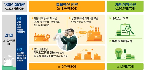 산업·건물·수송 전 부문의 에너지 효율 혁신을 바탕으로 다소비·저효율 에너지 구조에서 벗어나는 동시에 연관 산업 육성을 통해 양질의 일자리 창출까지 도모하겠다는 구상이다.
