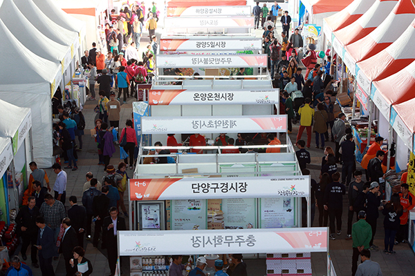 지난 2015년 10월 전국우수시장박람회를 찾은 시민들이 전국 각지에서 참여한 점포들을 둘러보고 있다.(사진=(c) 연합뉴스)박람회에서는 전국 우수시장의 볼거리와 먹거리, 청년상인이 참여한 개성과 특색 있는 전국 전통시장 대표 상품을 전시·판매한다.