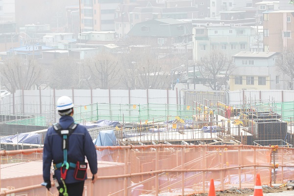 수도권 지역 미세먼지 비상저감조치가 엿새째 시행중인 지난 3월 6일 오후 서울의 한 건설 현장에서 건설노동자가 작업을 위해 이동하고 있다.(사진=(c) 연합뉴스)