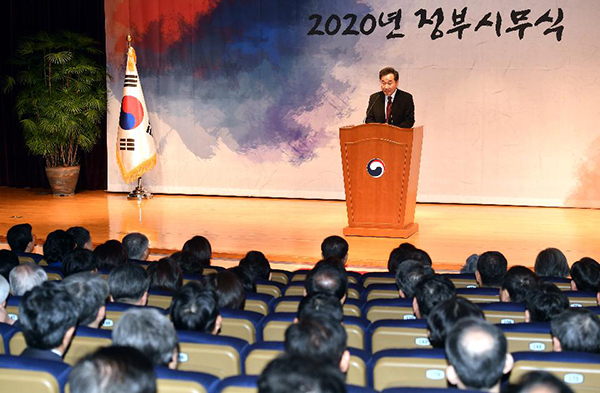 이낙연 국무총리가 2일 정부서울청사에서 열린 새해 첫 정부 시무식에 참석해 발언하고 있다.