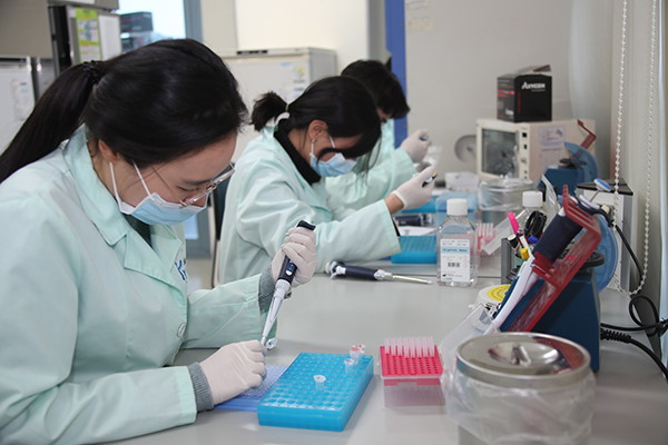 5일 서울 금천구의 신종 코로나바이러스 진단시약 제조업체인 코젠바이오텍에서 연구원들이 진단시약 실험을 하고 있다. (사진=(c) 연합뉴스)중수본은 질병관리본부의 ‘신종코로나바이러스감염증대응절차(5판)’ 사례정의를 기준으로 진단검사 대상이 의사환자와 내외국인 모두에게 확대적용된다고 밝혔다.